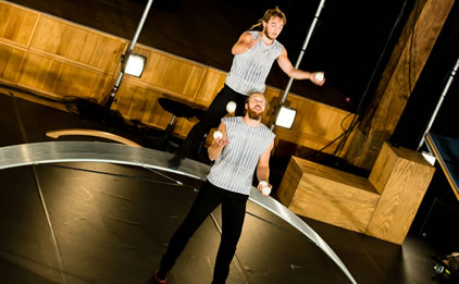 A brand new show from Magmanus. All about holding and letting go. One thing leads to another, everything is connected. Exploring new techniques using new equipment in different and exciting ways. Pushing balance, imbalance, tetter board and flying through the air to their limits. A great show full of the unusual that we have come to expect from Magmanus.